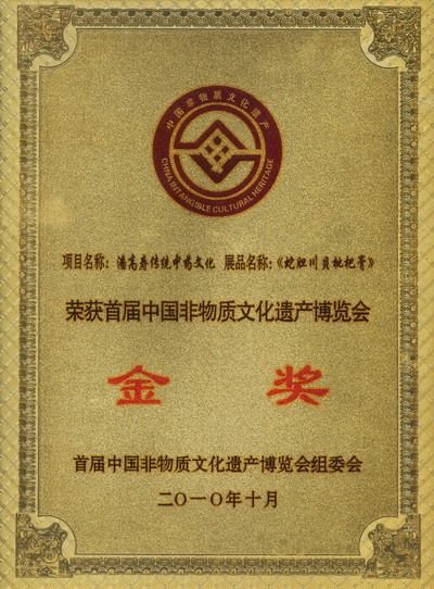 12月16日,在廣州市非物質文化遺產工作會議上,我司名牌產品“蛇膽川貝枇杷膏”獲頒“首屆中國非物質文化遺產博覽會金獎”。