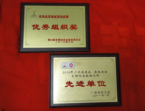 領(lǐng)導的鼓勵激發(fā)起“廣藥潘高壽志愿者助威團”全體人員的進一步熱情,團員加倍努力。在10月23、24日的晉級比賽中,“廣藥潘高壽志愿者助威團”在“機關(guān)企事業(yè)單位版塊志愿助威團晉級賽”中,在全省近100支團隊中獲得第8名的好成績,并獲亞組委頒發(fā)“最佳組織獎”榮譽,新年伊始,又再度獲得廣州市工會亞運會頒授“亞運亞殘運文明觀眾組織先進集體”獎。
